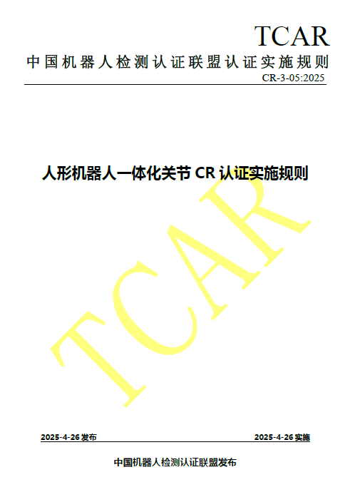 CR-3-05:2025《人形机器人一体化关节CR认证实施规则》