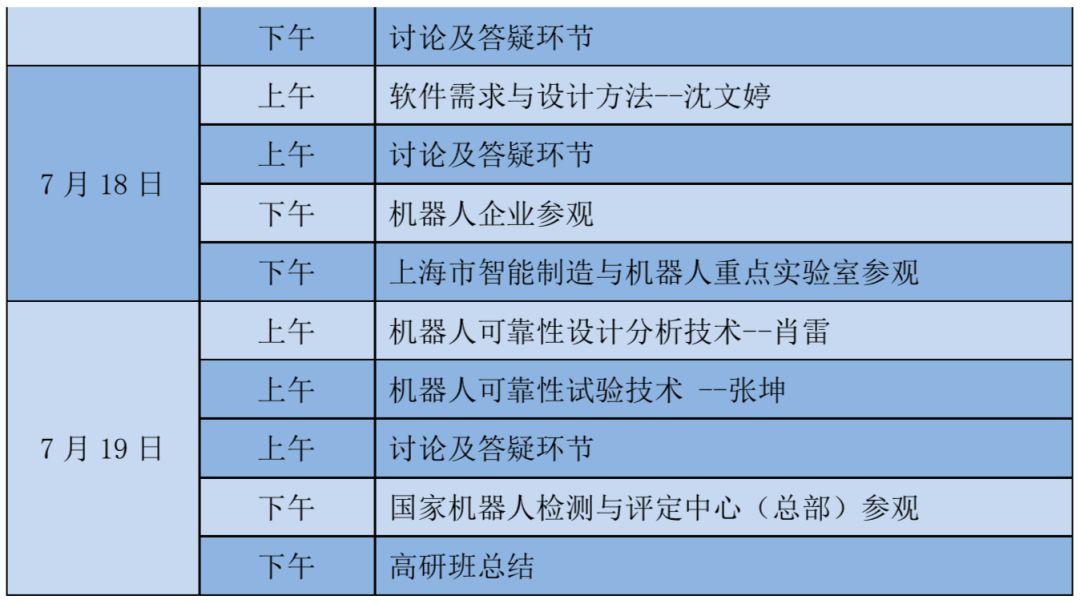 本次研修内容主要机器人可靠性与智能化方面。将邀请业内资深技术专家,以主题讲座和专题讨论形式,让学员学习并交流相关技术,同时还将组织研修学员进行实地参观。